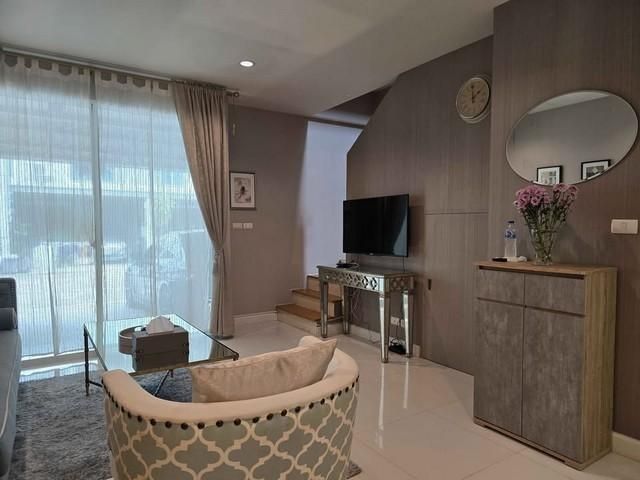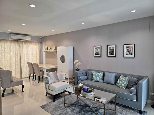 3-Storey Townhome for Rent: Patio Rama 2 (Soi 33 / Wat Yai Rom) Spacious living area with essential furniture and appliances. Ideally located for families with students at Roong Aroon School, offering easy access to the expressway.