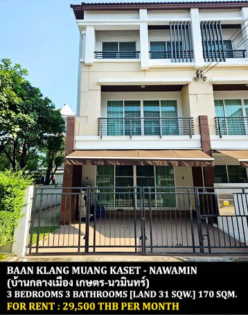 ![- ให้เช่า] หมู่บ้าน บ้านกลางเมือง เกษตร - นวมินทร์ / 3 ห้องนอน 3 ห้องน้ำ / 31 ตรว. 170 ตรม. **29,500**](https://f.meezub.com/media/property/thbs/26/0402/69cdd6902c3f2.jpg)