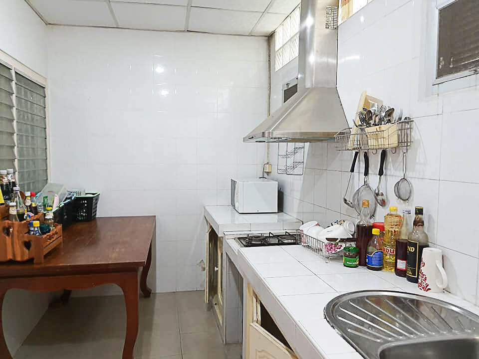 ชั้นล่างมี 1 ห้องนอน 1 ห้องน้ำ 1 ห้องนั่งเล่น 1 ห้องครัว (ส่วนต่อเติมเพิ่ม)