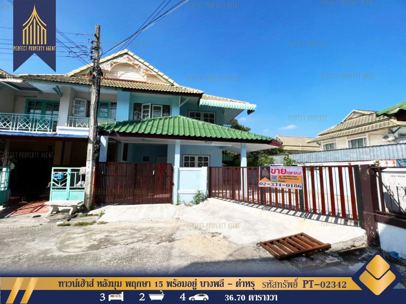ทาวน์เฮ้าส์ หลังมุม พฤกษา 15 พร้อมอยู่ เนื้อที่เยอะ บางพลี - ตำหรุ พร้อมอยู่