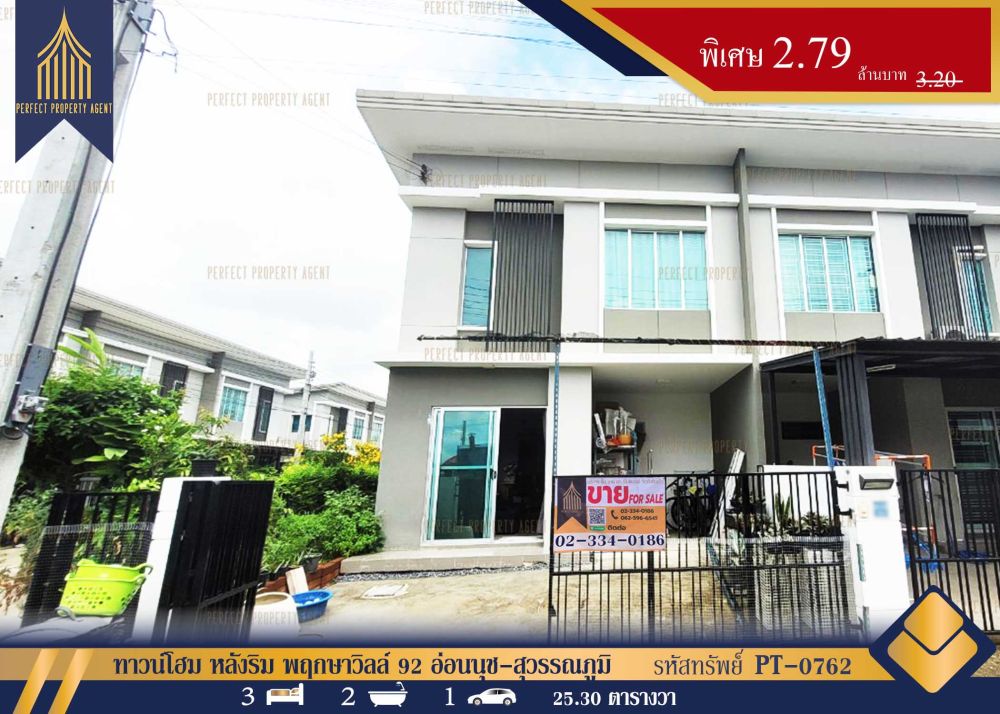 ทาวน์โฮม หลังริม พฤกษาวิลล์ 92 อ่อนนุช-สุวรรณภูมิ พร้อมอยู่
