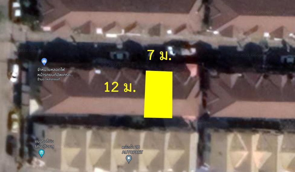 - ขนาดเนื้อที่ 18 ตรว. หน้ากว้างติดถนน 7 เมตร ลึก 12 เมตร