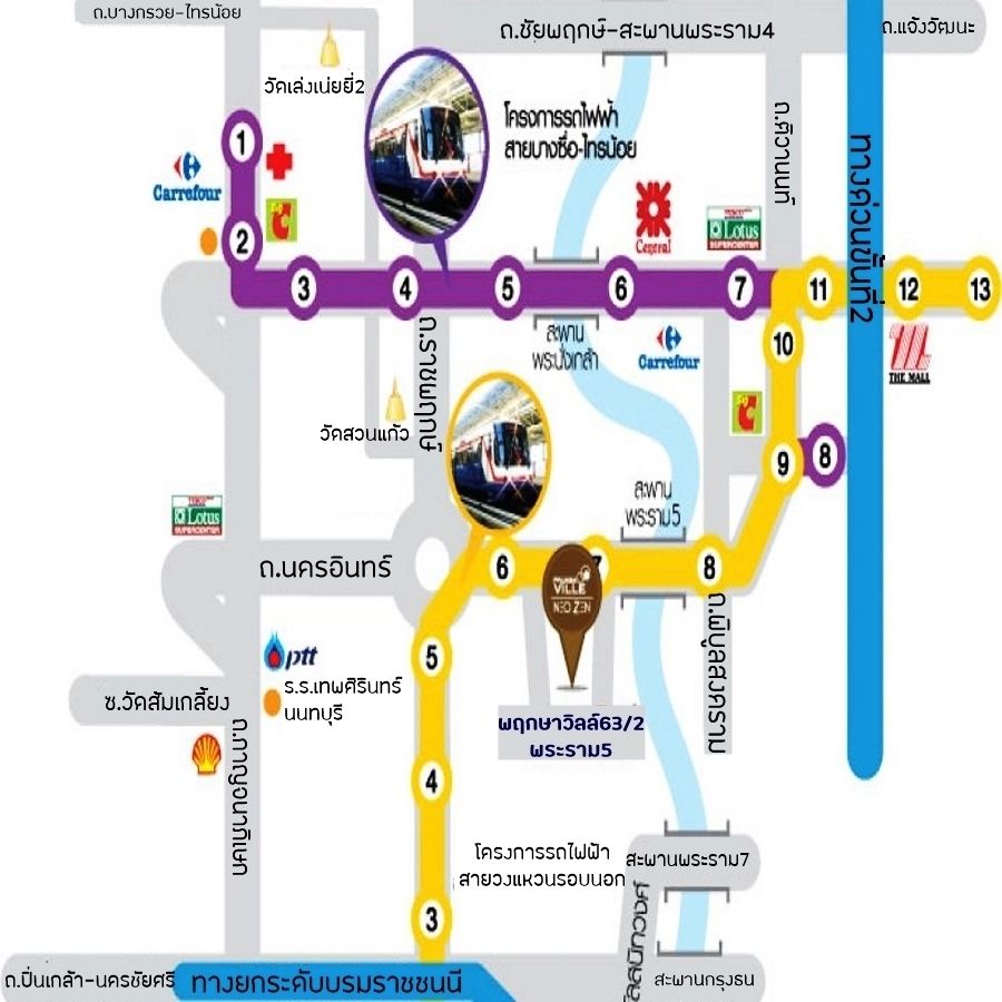 เส้นทางที่1 : จากถนนราชพฤกษ์วิ่งมาจนถึงวงเวียนพระราม5 ให้เข้าถนนนครอินทร์ฝั่งที่มุ่งหน้าสู่สะพานพระราม5 แล้วกลับรถใต้สะพาน เข้าซอยวัดสังฆทาน 800 เมตร โครงการอยู่ทางขวามือ