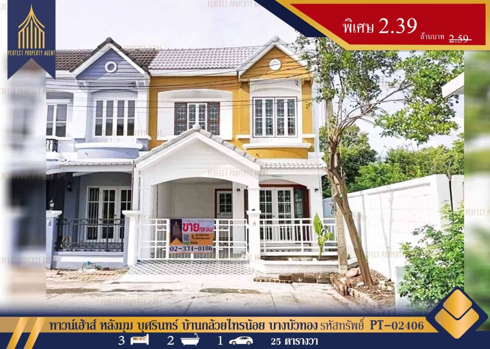 ทาวน์เฮ้าส์ หลังมุม บุศรินทร์ บ้านกล้วยไทรน้อย บางบัวทอง ฟรีโอน รีโนเวทใหม่