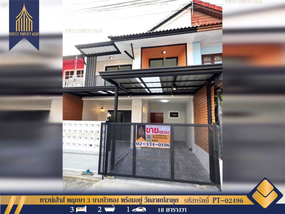 ทาวน์เฮ้าส์ พฤกษา 3 บางบัวทอง พร้อมอยู่ วัดลาดปลาดุก ทำเลดี
