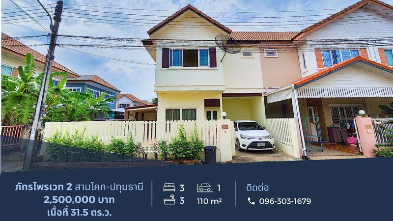 ทาวน์เฮ้าส์ หมู่บ้านภัทรไพรเวท 2 หลังริม ถนนปทุมธานี-สามโคก ใกล้ศูนย์ราชการเมืองปทุมธานี ต.สามโคก อ.สามโคก ปทุมธานี