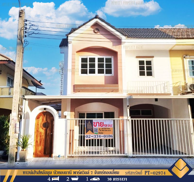 ทาวน์เฮ้าส์หลังมุม บัวทองธานี พาร์ควิลล์ 7 จันทร์ทองเอี่ยม บางบัวทอง
