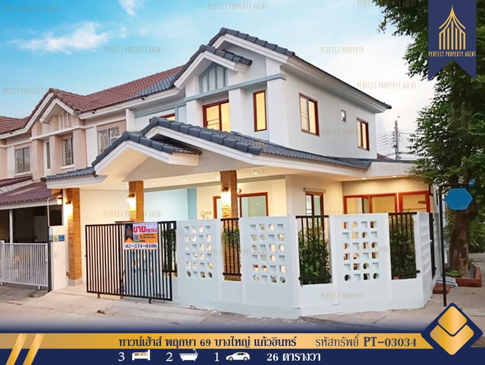 ทาวน์เฮ้าส์ พฤกษา 69 บางใหญ่-แก้วอินทร์ หลังมุม ฟรีโอน
