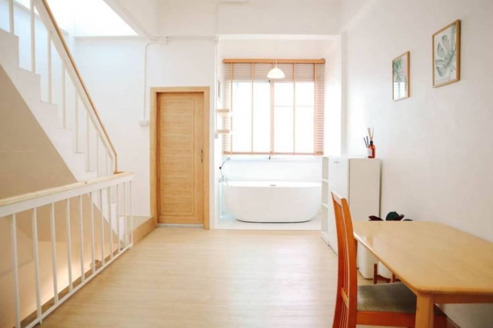 3-storey townhome, newly renovated, designed in Japanese style mixed with modern style. Suitable for residence or home office, located in a very good location, near the moat, near Wat Phra Singh.