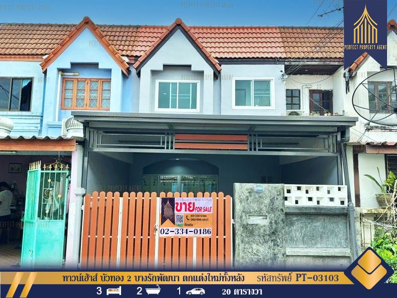 ทาวน์เฮ้าส์ บัวทอง 2 บางรักพัฒนา บางบัวทอง ตกแต่งใหม่ทั้งหลัง เดินทางสะดวก
