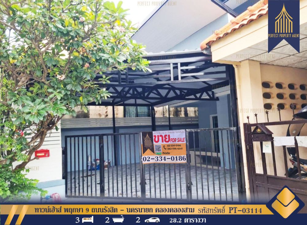 ทาวน์เฮ้าส์ พฤกษา 9 ถนนรังสิต - นครนายก คลองคลองสาม คลองหลวง ปทุมธานี