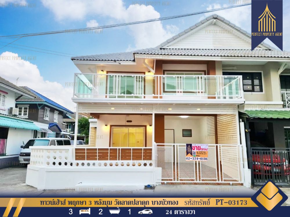 ทาวน์เฮ้าส์ พฤกษา 3 หลังมุม วัดลาดปลาดุก บางบัวทอง นนทบุรี