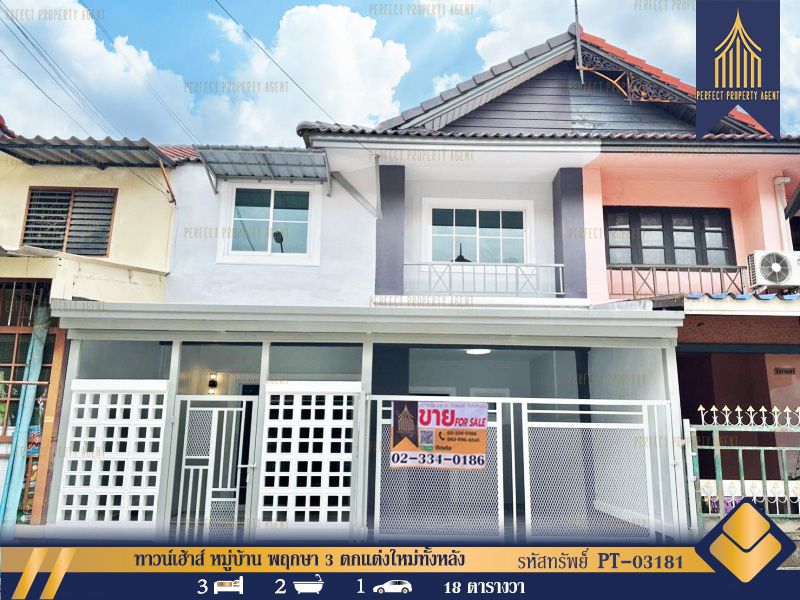 ทาวน์เฮ้าส์ หมู่บ้าน พฤกษา 3 ตกแต่งใหม่ทั้งหลัง เดินทางสะดวกสบาย