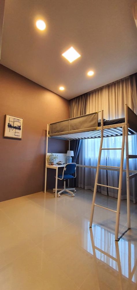 ทาวน์โฮมชั้นเดียว 2 ห้องนอน 1 ห้องน้ำ 1 ที่จอดส่วนตัว พื้นที่เริ่มต้น 20.6 ตร.วา พื้นที่ใช้สอย 50 ตร.ม. หน้าบ้านกว้าง 5.7 เมตร