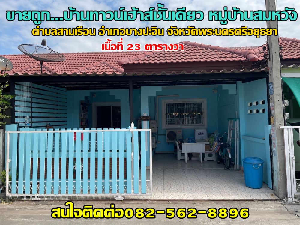 ขายถูกทาวน์เฮ้าส์ชั้นเดียว หมู่บ้านสมหวัง อยู่ใกล้ถนนหลักโรจนะ