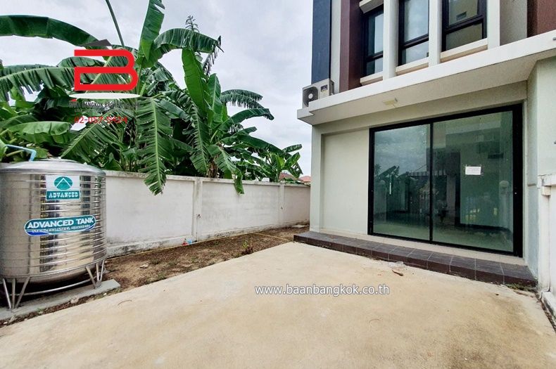 การตกแต่ง : มีสวนภายในบ้าน พื้นบ้านปูด้วยแกรนิตโต้ทุกชั้น ห้องนอนใหญ่ห้องน้ำในตัว ฝ้าหลุม ติดไฟดาวน์ไลท์+ปั้มน้ำ+แท็งค์น้ำ พร้อมแอร์อีก 1 เครื่อง