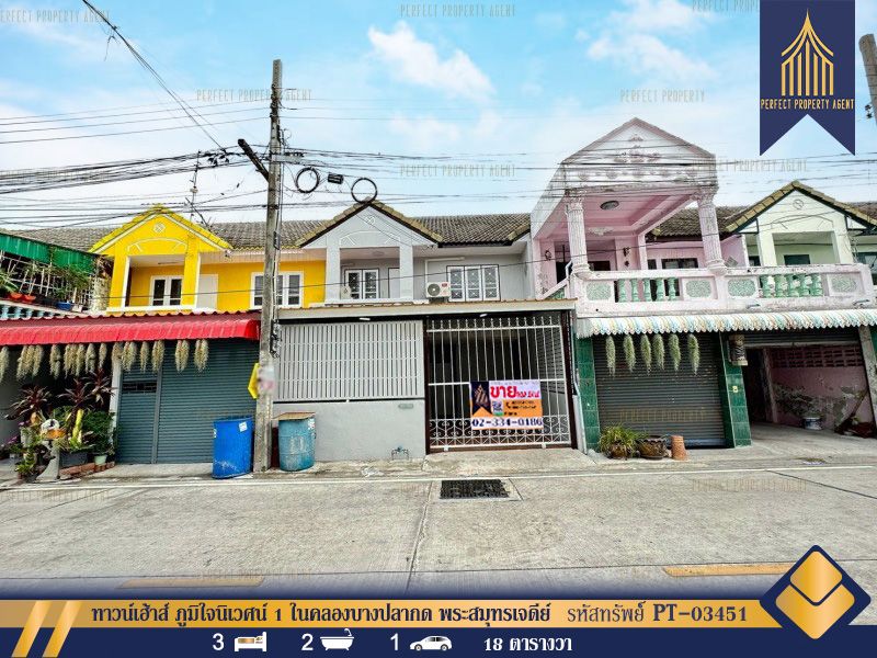 ทาวน์เฮ้าส์ ภูมิใจนิเวศน์ 1 ในคลองบางปลากด พระสมุทรเจดีย์ แถมเครื่องปรับอากาศฟรี