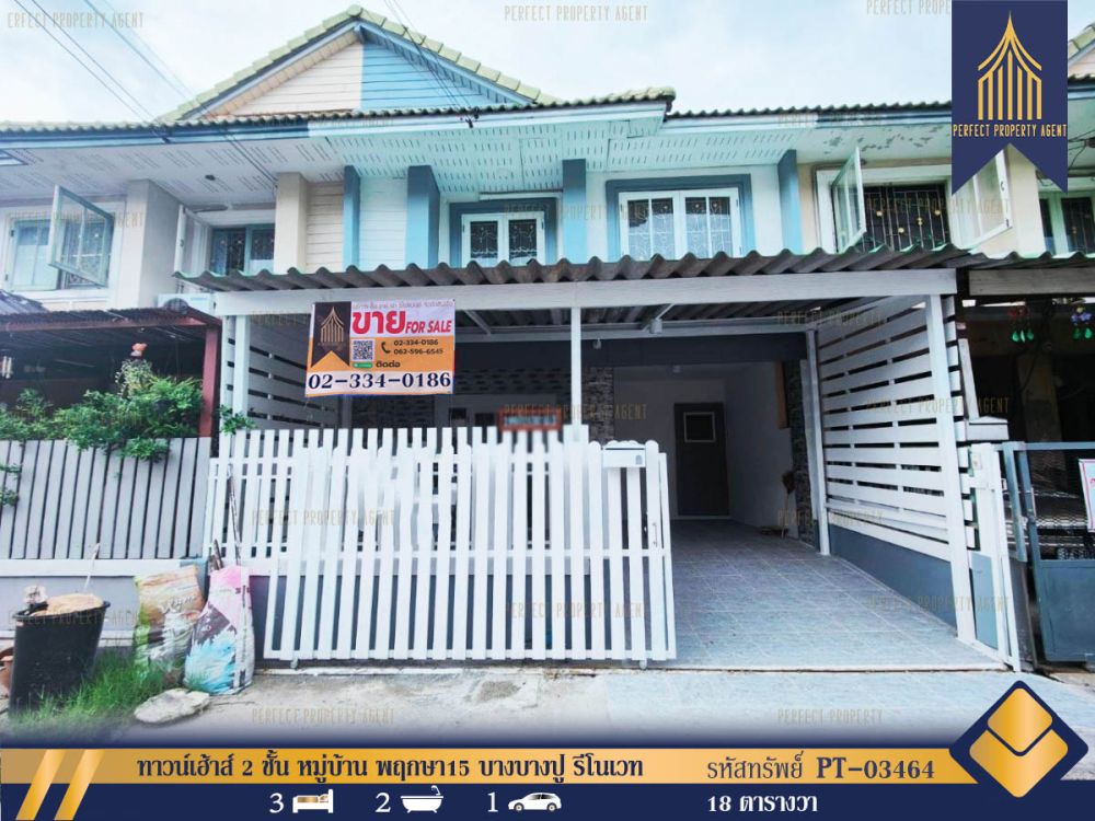 ทาวน์เฮ้าส์ 2 ชั้น หมู่บ้าน พฤกษา15 บางบางปู รีโนเวท พร้อมเข้าอยู่