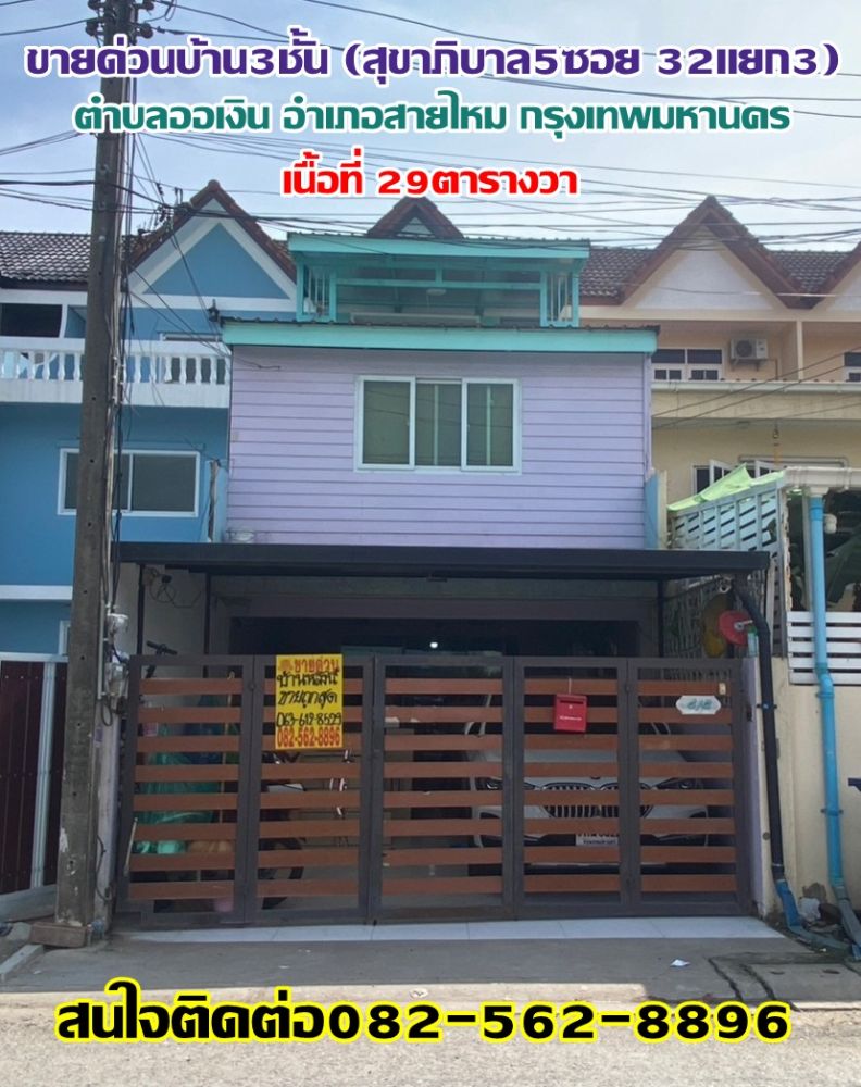 ขายด่วนบ้าน3ชั้น ตำบลออเงิน อำเภอสายไหม กรุงเทพมหานคร (สุขาภิบาล5ซอย 32แยก3)