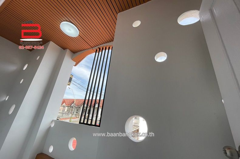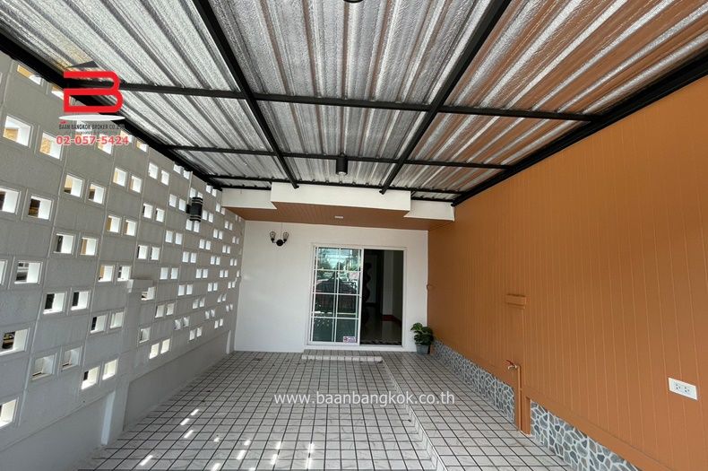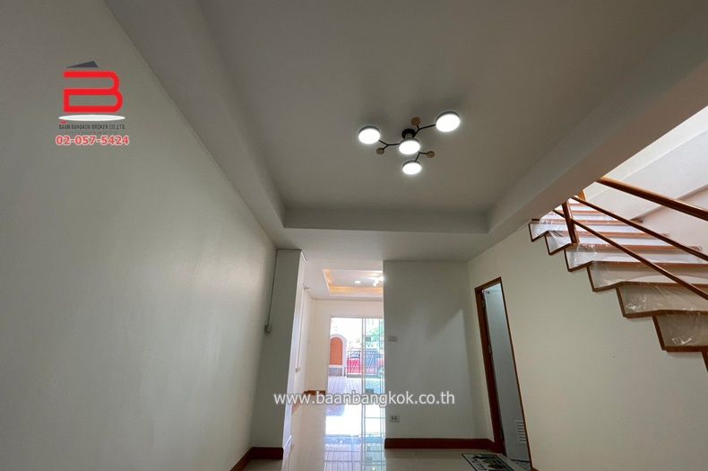 การตกเเต่ง : ปรับปรุงตกแต่งใหม่ทั้งหลัง พื้นล่างและบนปูกระเบื้องเซรามิค ขนาด 60x60 ห้องครัวมีเคาน์เตอร์ ตู้เก็บของ และติดตั้งพัดลมดูดอากาศในห้องน้ำทุกห้องและห้องครัว ห้องนั่งเล่นพร้อมผนังกั้น ฝ้าหลุมพร้อมซ่อนไฟ LED สไตล์โมเดิร์น มีปั้มน้ำ+แท็งค์น้ำ