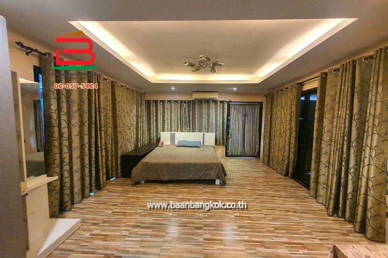 การตกแต่ง : รีโนเวททั้งหลัง สวย สภาพนางฟ้า พื้นชั้นล่างปูกระเบื้อง พื้นชั้นบนปูปาร์เก้และกระเบื้องแกรนิตโต้ รีโนเวทห้องนอนและห้องน้ำใหม่ ต่อเติมเพิ่มห้องเพื่อเพิ่มพื้นที่ใช้สอย ติดปั้มน้ำ+แท็งค์น้ำ แอร์ 6 เครื่อง ภายในโครงการมี สนามไดร์ฟกอล์ฟ สระว่ายน้ำ
