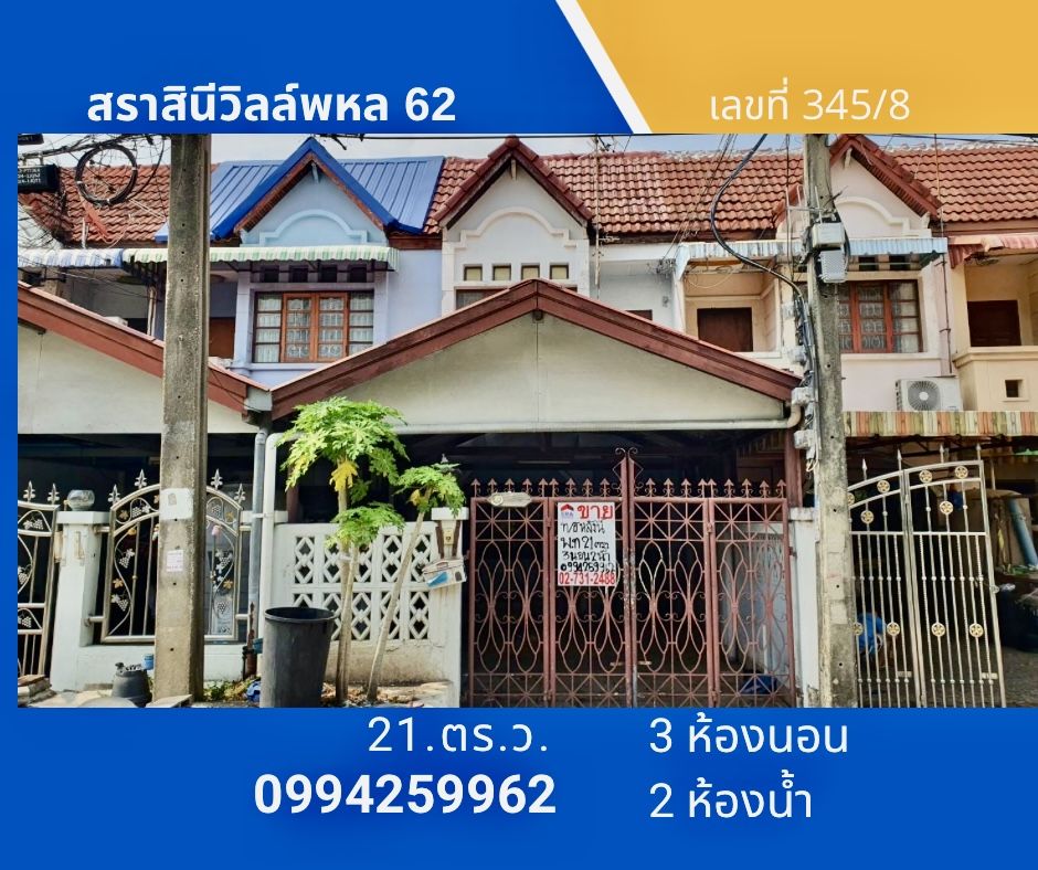 - ทาวน์เฮ้าส์ 2 ชั้น 21 ตรว. หมู่บ้านสราสินีวิลล์ พหลโยธิน 62 ซ.วิเชียร 3 ถ.พหลโยธิน
