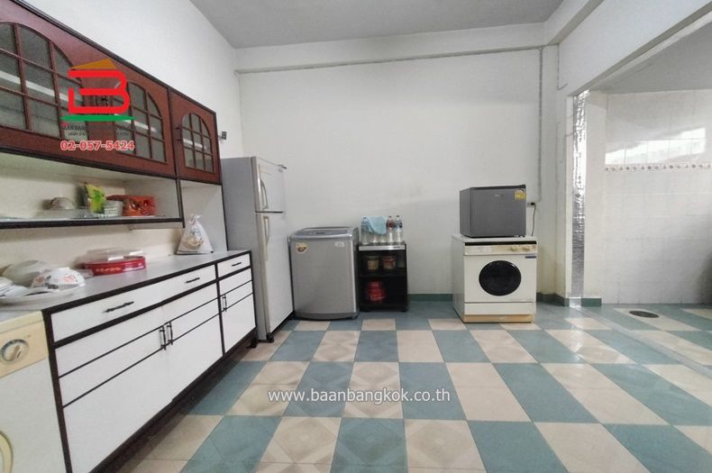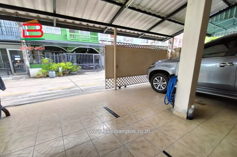การตกแต่ง : เฟอร์ฯบางส่วน พื้นชั้นล่างปูด้วยกระเบื้อง พื้นชั้นบนปูปาร์เก้และกระเบื้อง พื้นที่ใช้สอยเยอะ โถงรับแขก ห้องทานข้าว สามารถกั้นเป็นห้องอเนกประสงค์/ห้องทำงาน/ห้องนอน/ห้องผู้สูงอายุได้ เคาน์เตอร์ครัวปูน พร้อมเตาแก๊ส ฮู๊ดดูดควัน มีปั้มน้ำ+เเท็งค์น้ำ โซนซักล้างหลังบ้าน พร้อมเเอร์ 3 เครื่อง ชั้นสองต่อเติมระเบียง สามารถทำเป็นพื้นที่อเนกประสงค์ ใช้ประโยชน์เพื่อสันทนาการได้ ต่อเติมหลังคาโรงจอดรถและครัวไทยหลังบ้าน สิ่งอำนวยความสะดวกในโครงการ อาทิ รปภ.รักษาความปลอดภัย 24 ชั่วโมง การจัดการขยะไฟส่องสว่าง