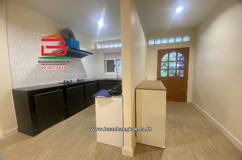 การตกแต่ง : มีเคาน์เตอร์ครัวพร้อมใช้งาน และลานซักล้าง ตกแต่งผนังด้วยวัสดุดีเยี่ยม พื้นปูด้วยกระเบื้องแกรนิตโต้