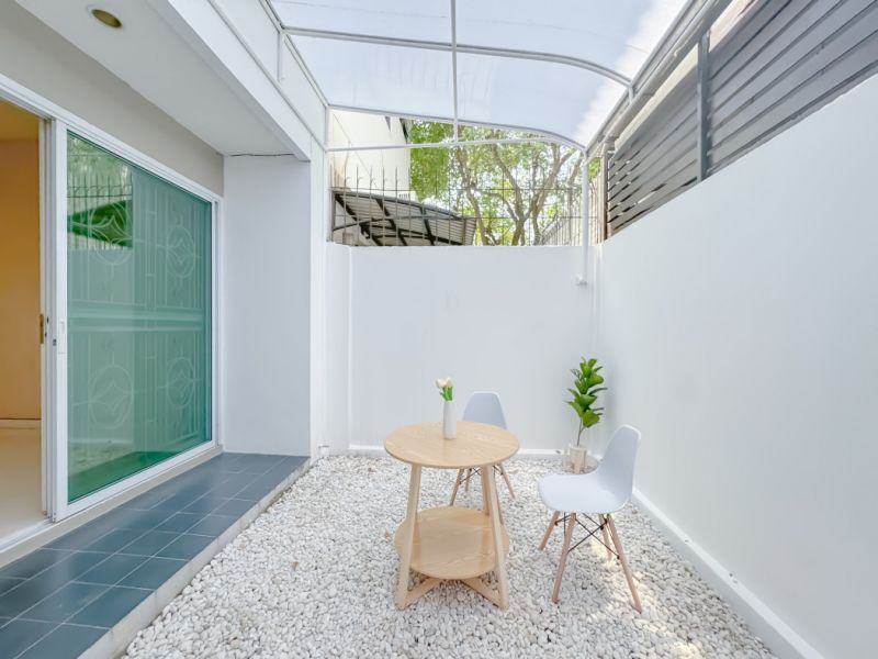 - ต่อเติมหลังคาหลังบ้านให้เรียบร้อย สามารถจัดพื้นที่ทำเป็นสวนนั่งเล่นได้