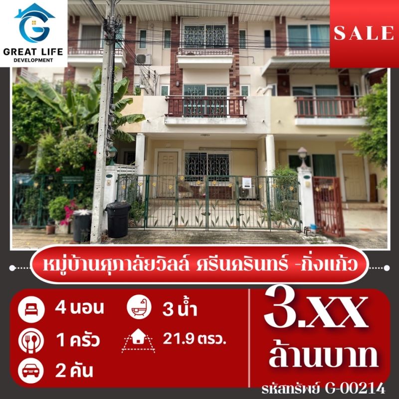 ขาย ทาวน์โฮม หมู่บ้านศุภาลัยวิลล์ ศรีนครินทร์ กิ่งแก้ว ....... ตรม. 21.9 ตร.วา