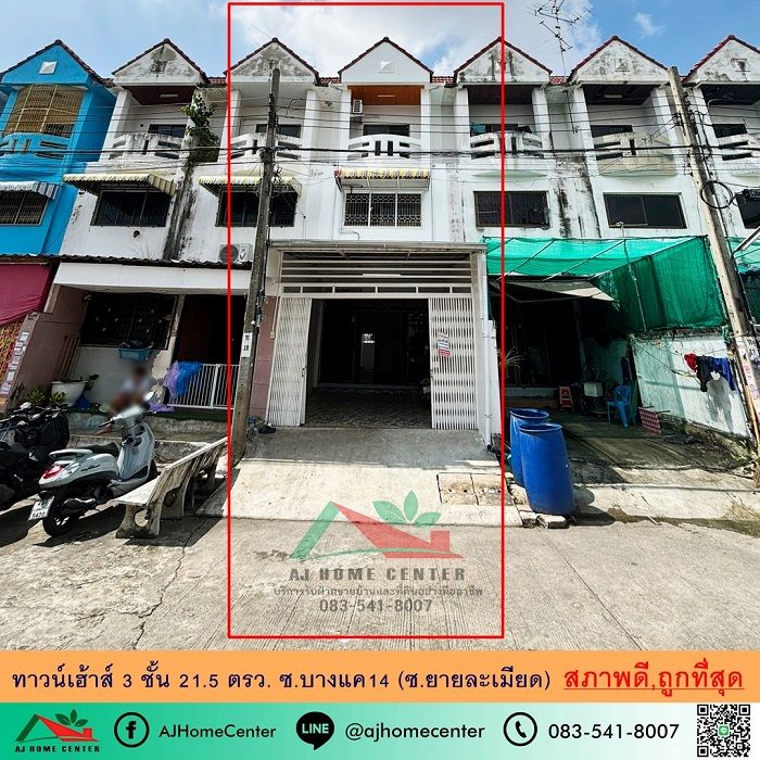 ขายถูกสุด2.29ล้าน ทาวน์เฮ้าส์3ชั้น 21.5ตรว. ซ.บางแค14 สภาพดีพร้อมใช้งาน ใกล้รถไฟฟ้าสถานีท่าพระ