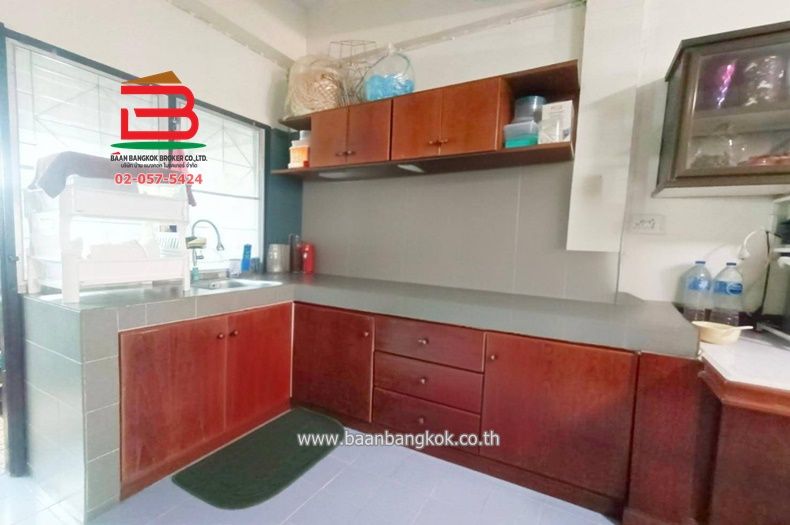 การตกเเต่ง : เฟอร์นิเจอร์บางส่วนบิวท์อิน พื้นล่างปูกระเบื้อง พื้นบนปูปาร์เก้ ตกแต่งห้องครัวเพิ่มเติม ภายในติดมุ้งลวด+เหล็กดัด แอร์ 1 เครื่อง ที่จอดรถปูพื้นกระเบื้อง มีสิ่งอำนวยความสะดวก อาทิ รปภ.24 ชั่วโมง