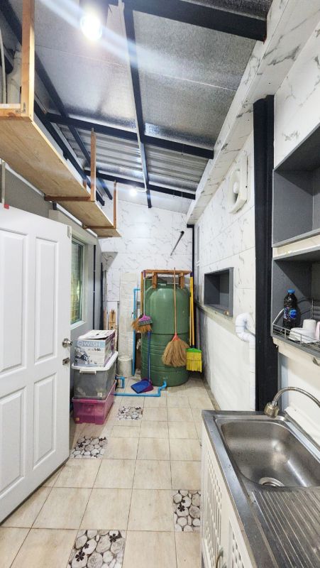 - หลังบ้าน ต่อเติมครัว หลังคามีฉนวน PU รางน้ำฝนสแตนเลส เคาน์เตอร์ ซิงค์
