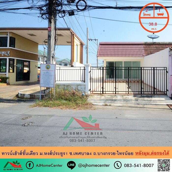 ขายทาวน์เฮ้าส์ชั้นเดียว 38.8ตรว. หลังมุม ม.หงส์ประยูร1 ซ.เทศบาล4 ถ.บางกรวย-ไทรน้อย สภาพดี ต่อรองได้