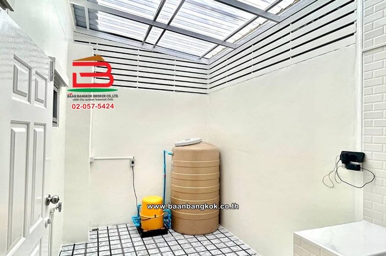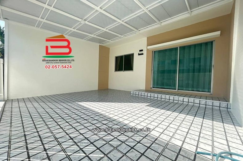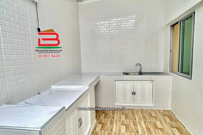 การตกแต่ง : พื้นชั้นล่างปูด้วยกระเบื้องแกรนิตโต้ พื้นชั้นบนปูกระเบื้อง บันไดเป็นไม้ยางพาราประสาน ต่อเติมหลังคาโรงจอดรถ,ห้องครัว และปูพื้นกระเบื้อง พร้อมแอร์ 2 เครื่อง มีสิ่งอำนวยความสะดวกอาทิ เช่น รปภ.24 ชม., CCTV, สนามเด็กเล่น