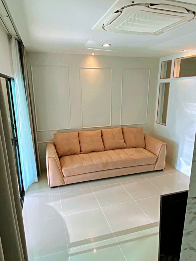 - ชั้นล่าง: ห้องรับแขก (แอร์ฝัง), โต๊ะทานข้าว, เคาน์เตอร์ครัว, ห้องน้ำ (ติดตั้งกระจกกันน้ำกระเด็น)