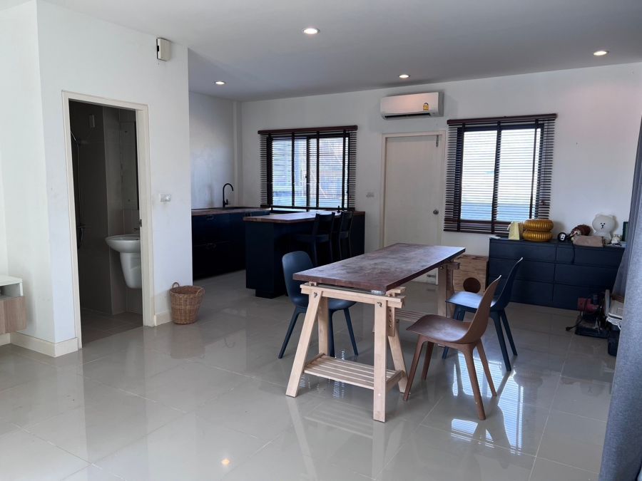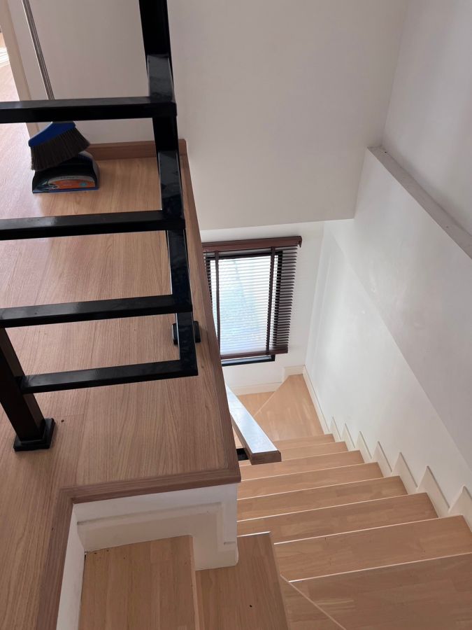 - 3 ห้องนอน 2 ห้องน้ำ 1 ห้องโถง 1 จอดรถ พื้นชั้นล่างเป็นกระเบี้อง 60*60 cm ชั้นบน กระเบื้องยาง บันไดไม้จริง