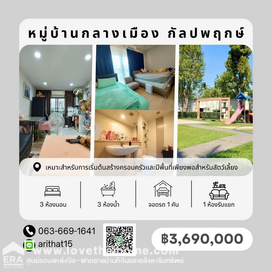 ขายทาวน์โฮม 3 ชั้น หมู่บ้านกลางเมือง กัลปพฤกษ์ พื้นที่ 16.5 ตรว. ราคา 3.69 ล้าน ใกล้ MRT บางแค บ้านสภาพดี ฟรีสินเชื่อทุกธนาคาร