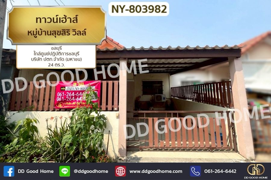 ทาวน์เฮ้าส์ หมู่บ้านสุขสิริ วิลล์ ชลบุรี ใกล้ศูนย์ปฏิบัติการชลบุรี บริษัท ปตท.จำกัด (มหาชน)