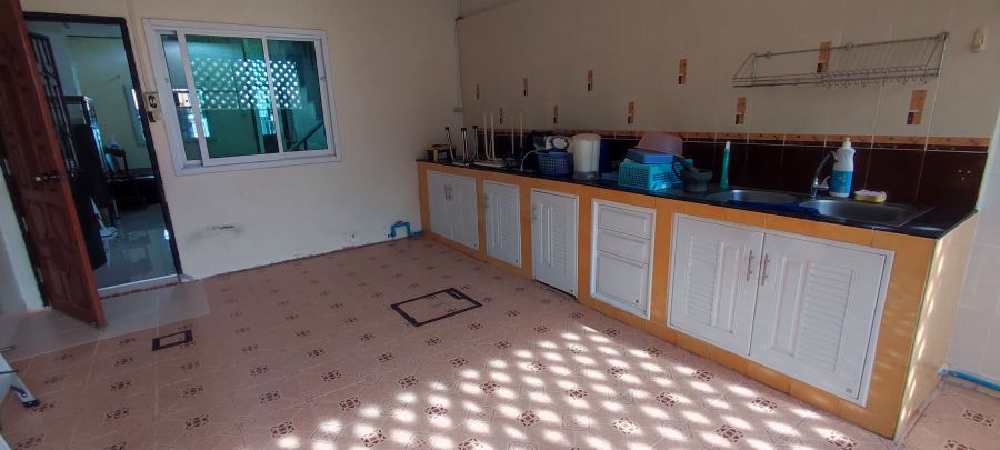 พิเศษหลังบ้านมีครัวปูนยาว กว้างขวาง แถมตะแกรงสแตนเลสวางจานให้