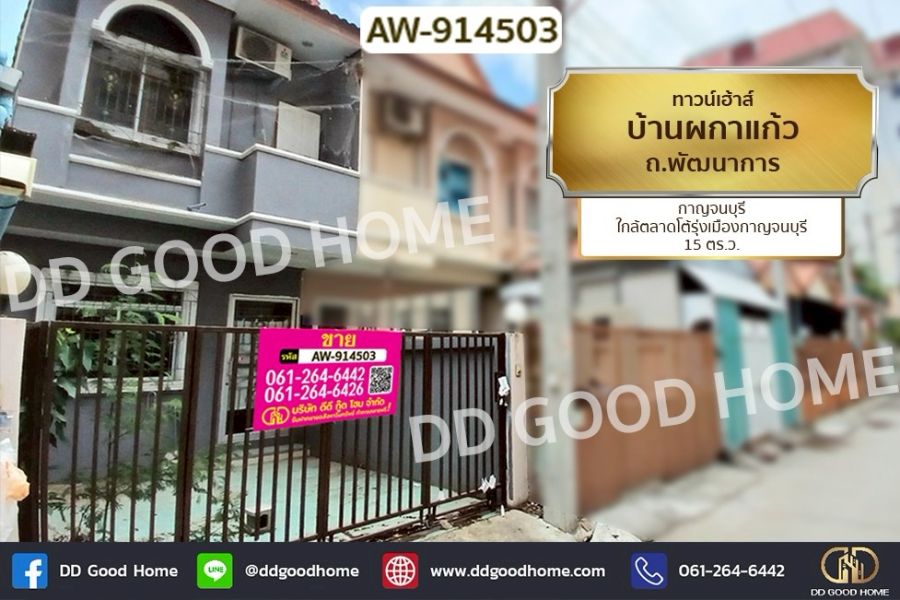 ทาวน์เฮ้าส์ บ้านผกาแก้ว ถ.พัฒนาการ กาญจนบุรี ใกล้ตลาดโต้รุ่งเมืองกาญจนบุรี