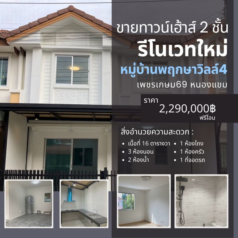 ขายทาวน์เฮ้าส์ 2 ชั้น รีโนเวทใหม่ หมู่บ้านพฤกษาวิลล์4 เพชรเกษม69 หนองแขม