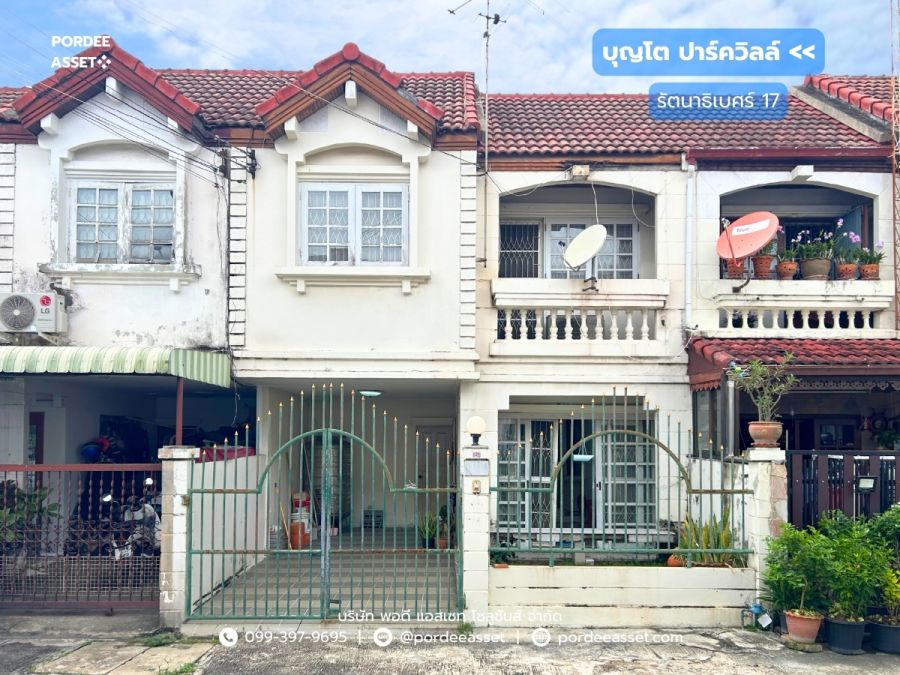 ขาย!! หมู่บ้านบุญโต ปาร์ควิลล์ รัตนาธิเบศร์ (ขนาด 21 ตร.ว.) ซอยรัตนาธิเบศร์ 17 ใกล้ MRT สถานีบางกระสอ เพียง 400 ม. บางกระสอ เมืองนนทบุรี : Boonto Park Vill