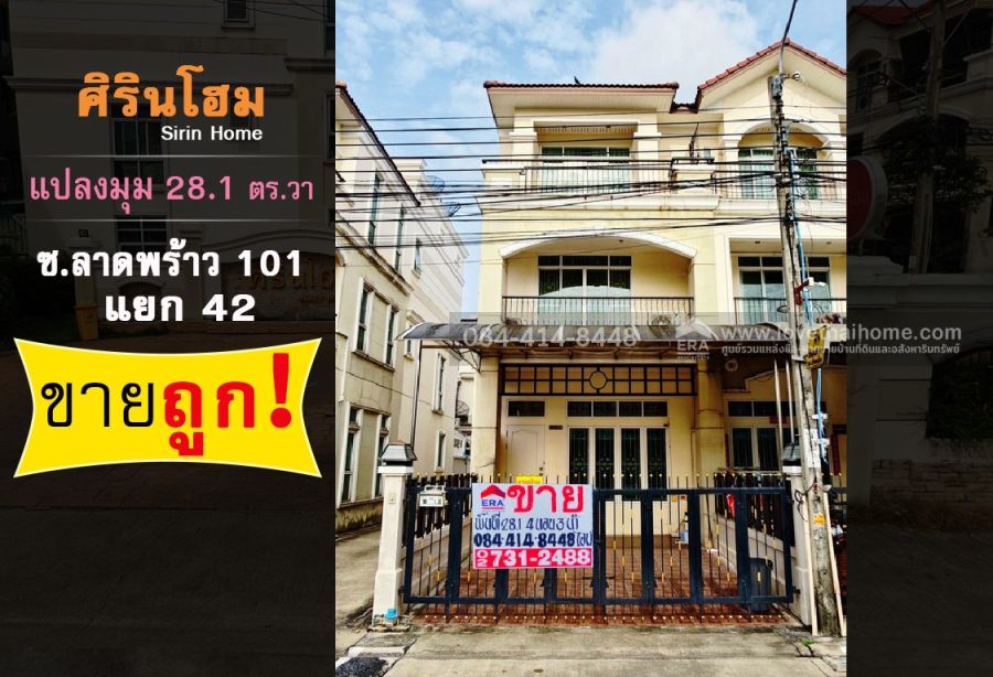 ขายทาวน์โฮม 3 ชั้น 28.1 ตรว. หมู่บ้านศิรินโฮม ซ.ลาดพร้าว 101 หลังมุม ราคาถูก เพียง 💖💖💖💖 4.99 ล้าน💖💖💖💖 ใกล้รถไฟฟ้าสายสีเหลือง-สถานีลาดพร้าว 101ถูกสุดในหมู่บ้านแล้วจ้า ราคาหลังมุม 5.5 💖💖💖💖