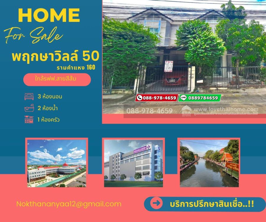 🏡 ขายทาวน์เฮ้าส์ 2 ชั้น หลังมุม หมู่บ้านพฤกษาวิลล์ 50 ซอยรามคำแหง 160 (มิสทีน) ใกล้รถไฟฟ้าสายสีส้ม สถานีราษฎร์พัฒนา