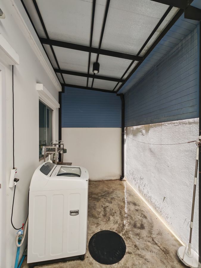 - ต่อเติมหลังคาหลังบ้านเป็นโซนซักล้าง