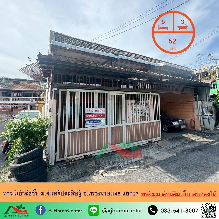 ขายทาวน์เฮ้าส์2ชั้น 52ตรว. หลังมุม ม.จันทร์ประดิษฐ์ ซ.เพชรเกษม48 แยก27 ต่อเติมเต็ม สภาพดี ต่อรองได้