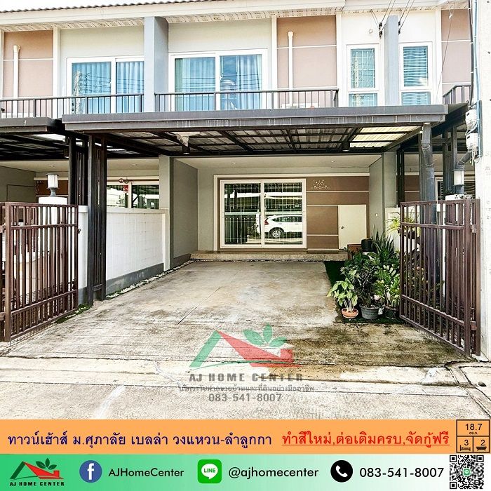 ขายทาวน์เฮ้าส์18.7ตรว. ม.ศุภาลัย เบลล่า วงแหวน-ลำลูกกา ทำสีใหม่ ต่อเติมครบ จัดดู้ฟรี