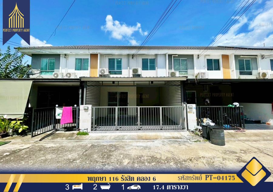 ขายทาวน์เฮ้าส์ พฤกษา 116 รังสิต คลองหก ปทุมธานี แถมแอร์ 3 ตัว