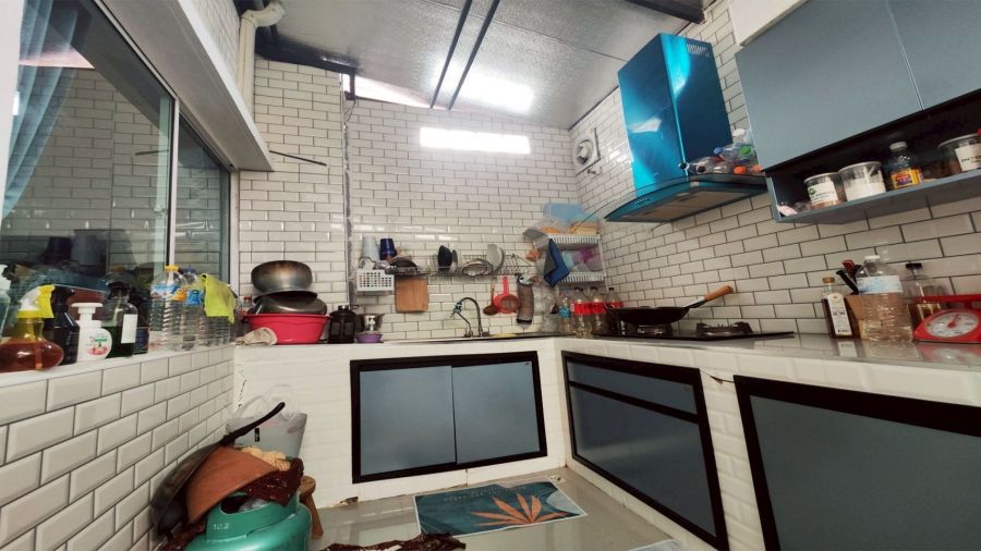 1 ห้องครัว ด้านหลังบ้านมีหลังคาสูงพร้อมฮูดดูดควัน